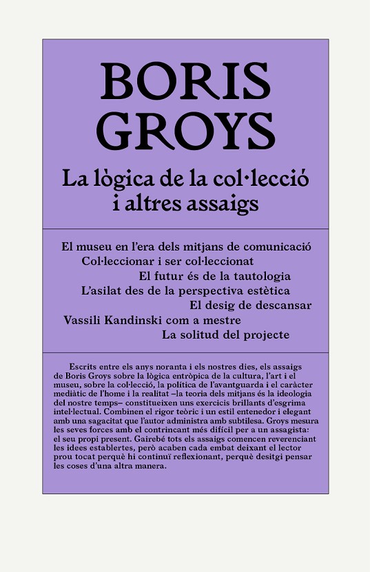Escrits entre els anys noranta i els nostres dies, els assaigs de Boris Groys sobre la lògica entròpica de la cultura, l'art i el museu, sobre la col·lecció, la política de l'avantguarda i el caràcter mediàtic de l'home i la realitat ?la teoria dels mitjans és la ideologia del nostre temps? constitueixen uns exercicis brillants d'esgrima intel·lectual. Combinen el rigor teòric i un estil entenedor i elegant amb una sagacitat que l'autor administra amb subtilesa. Groys mesura les seves forces amb el contrincant més difícil per a un assagista: el seu propi present. Gairebé tots els assaigs comencen reverenciant les idees establertes, però acaben cada embat deixant el lector prou tocat perquè hi continuï reflexionant, perquè desitgi pensar les coses d'una altra manera.