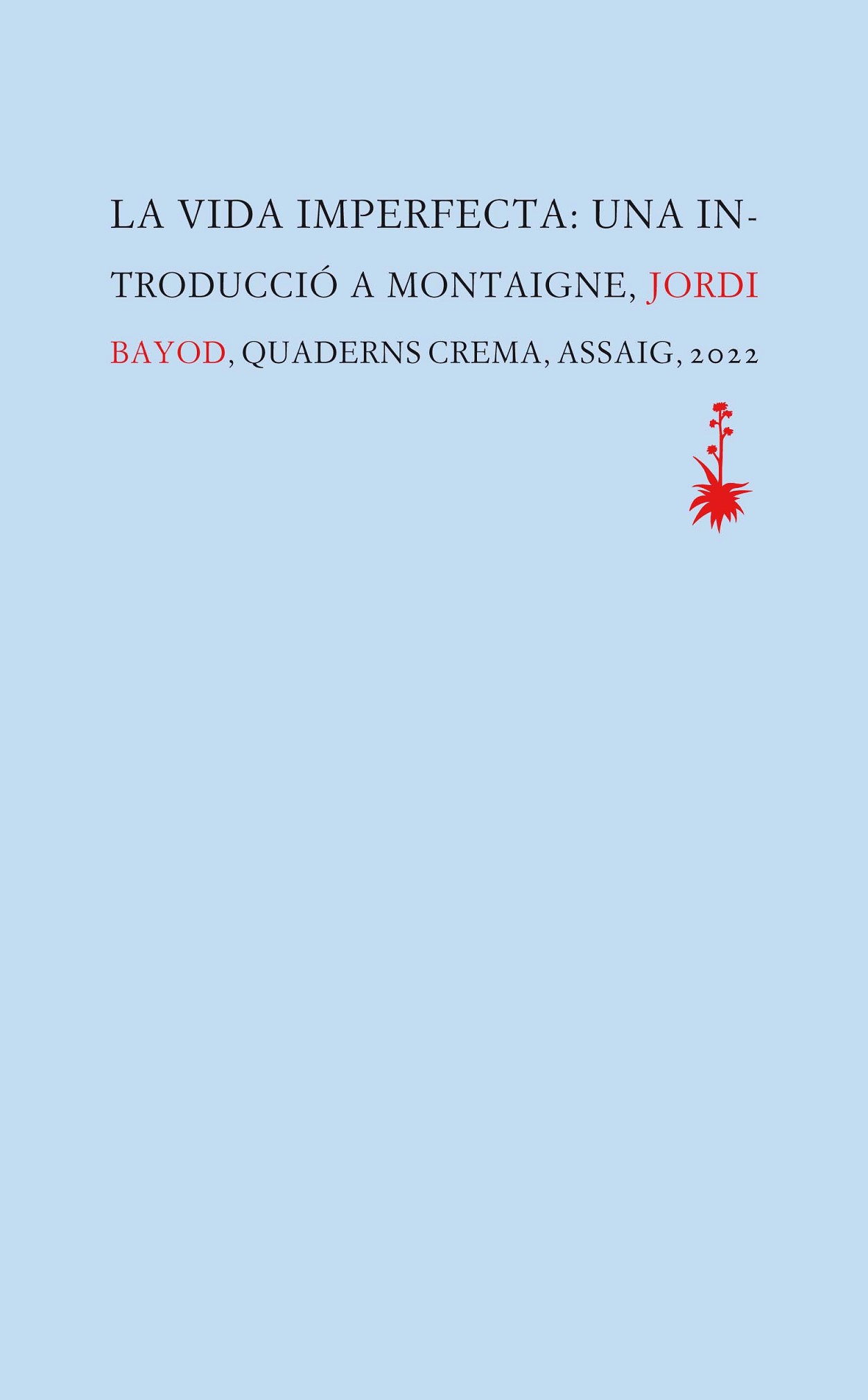 Desprès d'una joventut regida per l'hedonisme, Michel de Montaigne abandona el càrrec que exercia en el Parlament de Bordeus i es retira al seu castell per consagrar-se a la contemplació i a l'estudi. L'experiment, però, fracassa, i la soledat el precipita en una penosa malenconia. La seva obra mestra, els cèlebres Assaigs, és una resposta a aquest malestar: Montaigne no només hi desenvolupa una filosofia vital inspirada en la tradició clàssica, sinó que, en un exercici d'absoluta modernitat, fa de l'escriptura el mitjà per reconciliar-se amb si mateix i amb la vida en tota la seva imperfecció. Jordi Bayod, especialista en l'obra de Montaigne i autor d'una traducció de referència dels Assaigs en llengua castellana, explora en aquest llibre docte i clarificador la trajectòria vital i intel·lectual d'un escriptor que, a la cerca de la vida feliç, va ser capaç de conciliar les més nobles aspiracions de la humanitat amb la indefugible finitud de l'existència.