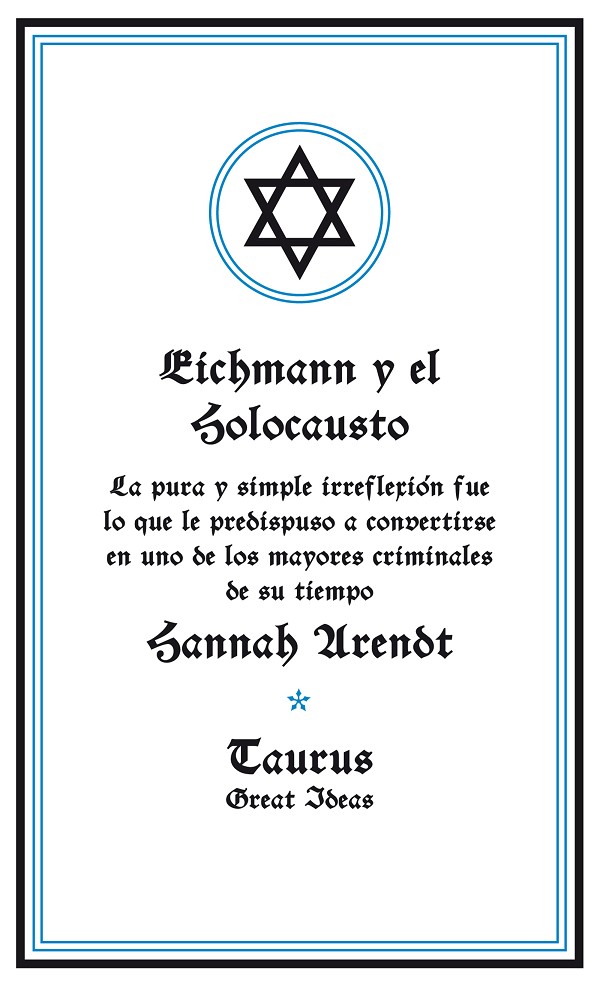 Ideas que han cambiado el mundo. A lo largo de la historia, algunos libros han cambiado el mundo. Han transformado la manera en que nos vemos a nosotros mismos y a los demás. Han inspirado el debate, la discordia, la guerra y la revolución. Han iluminado, indignado, provocado y consolado. Han enriquecido vidas, y también las han destruido. Taurus publica las obras de los grandes pensadores, pioneros, radicales y visionarios cuyas ideas sacudieron la civilización y nos impulsaron a ser quienes somos. Inspirada por el juicio a un burócrata que contribuyó a provocar el Holocausto, esta obra fundamental sobre la banalidad del mal asombró al mundo con su análisis de la ceguera moral de un régimen y de la insistencia de un hombre en ser absuelto de toda culpa porque «sólo cumplía órdenes».Comentarios sobre la colección Great Ideas: