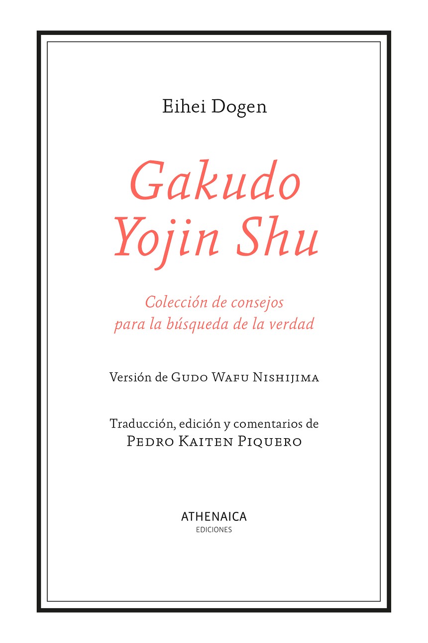 El Gakudo Yojin Shu (Colección de consejos para la búsqueda de la verdad), ofrecido aquí en la versión de Gudo Wafu Nishijima, es una breve recopilación de diez textos con consejos para acercarse al budismo. Basándose en su propia experiencia en la búsqueda de la verdad, y con el fin de ayudar a las personas que quisieran aprenderla, el Maestro Dogen escribió esta guía simple y directa reparando en los aspectos fundamentales a la hora de seguir la vía budista: desde la voluntad para la verdad, las auténticas enseñanzas o qué debemos esperar de la práctica, a la búsqueda de un verdadero maestro o la importancia de sentarse en zazen. Al texto original de Eihei Dogen se suman en esta edición los extraordinarios comentarios del maestro zen Kaiten Piquero que, de forma coloquial, es decir, priorizando la claridad e incorporando ejemplos sencillos, pero al mismo tiempo profundizando al detalle en cada uno de los consejos, toma como referencia el libro original para conformar una guía introductoria contemporánea que expone las bases del budismo zen y cómo acercarse a él. Por ello, el libro admite varios niveles de lectura, intentando servir tanto a los que deseen iniciarse o conocer las bases del budismo como a aquellos que quieran ahondar en su enseñanza.
