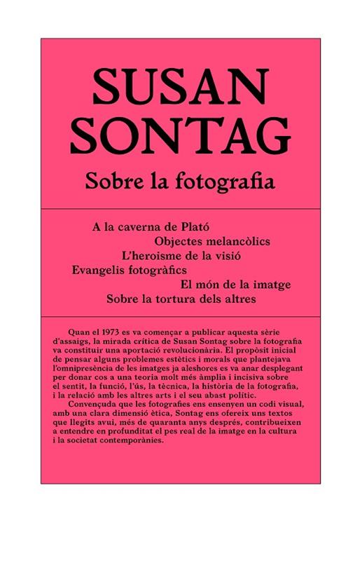 Convençuda que les fotografies ens ensenyen un codi visual, amb una clara dimensió ètica, Sontag ens ofereix uns textos que llegits avui, més de quaranta anys després, contribueixen a entendre en profunditat el pes real de la imatge en la cultura i la societat contemporànies.