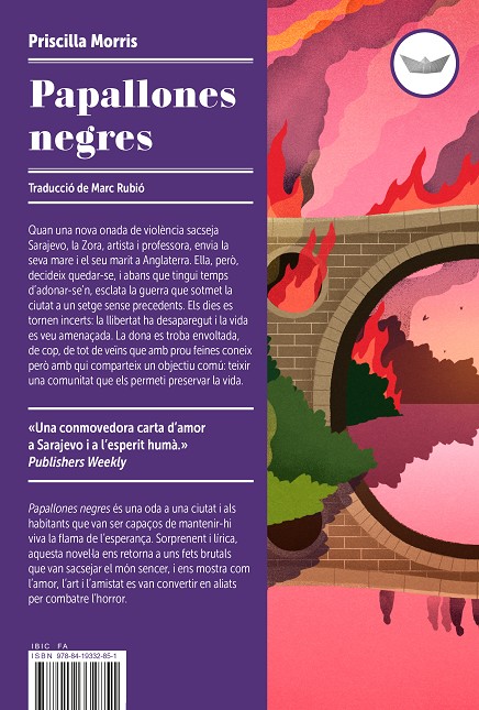 Papallones negres és una oda a una ciutat i als habitants que van ser capaços de mantenir-hi viva la flama de l02019;esperança. Sorprenent i lírica, aquesta novel·la ens retorna a uns fets brutals que van sacsejar el món sencer, i ens mostra com l02019;amor, l02019;art i l02019;amistat es van convertir en aliats per combatre l02019;horror."